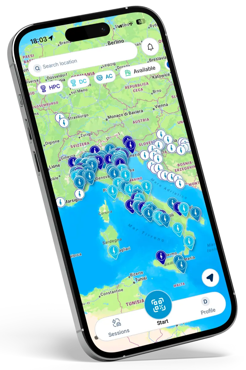 Find nearby stations, book in advance, start charging with a QR code or RFID card, track your session via the app, and pay seamlessly.